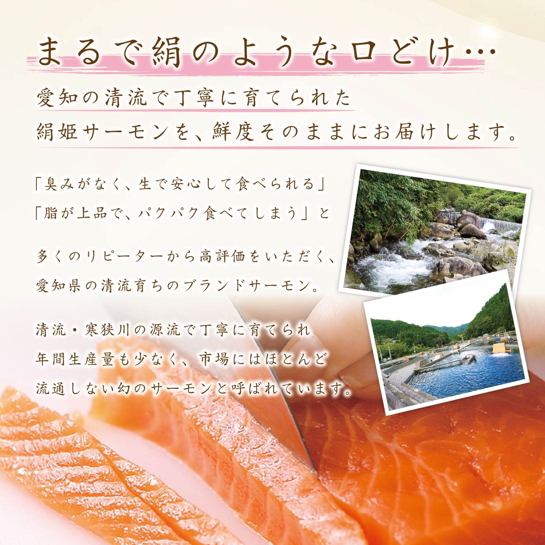 | 原材料 | 絹姫サーモン(愛知県産) |