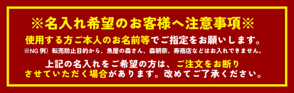 ※名入れ希望のお客様へ。名入れは使用する本人などのお名前でご指定ください。「魚屋の森さん」「寿商店」「森あさな」などはお入れできません。